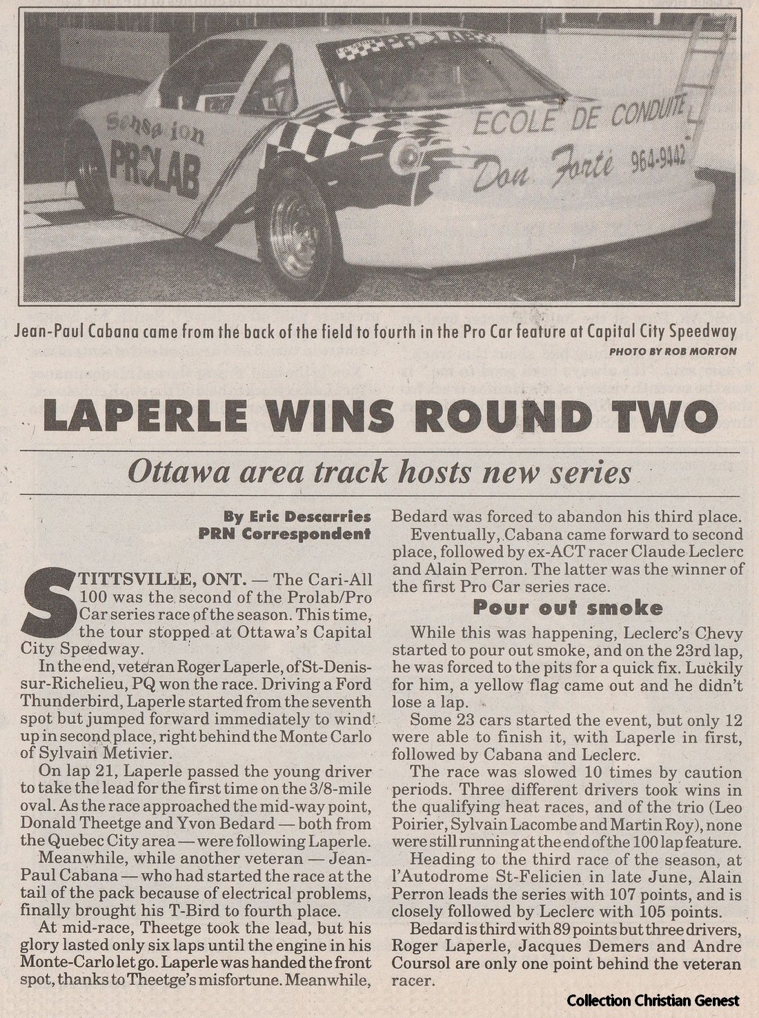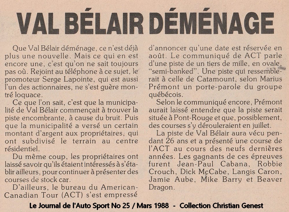10 janvier 2025 Article 1988 (24e) de l'Autodrome Granby Articles 1988 (11e, 12e) de Jean-Paul Cabana Publicité 1988 (20e) du Sanair Super Speedway Pub, article 1988 (8e, 9e) du Circuit Deux-Montagnes Article 1988 (30e) de l'Autodrome Drummond Article 1988 (93e) du Circuit Ste-Croix Pub., article 1988 (22e, 23e) de l'Autodrome Granby Article, pub. 1988 (13e, 14e) de l'Autodrome Mont-Carmel Article 1988 (8e) de l'Autodrome de Val-Bélair Articles 1988 (12e, 13e) de Donald Theetge Article 1988 (10e) de Jean-Paul Cabana Article 1988 (1er) de la Piste Petite Manic Article 1988 (5e) de Richard Thibodeau