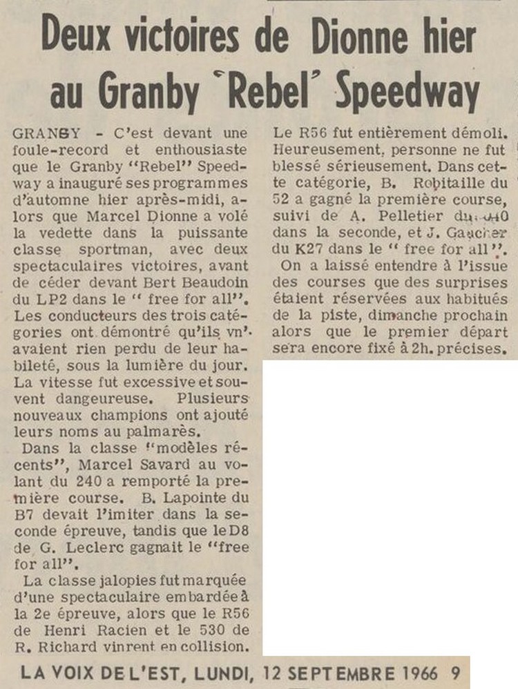 29 juin 2024 Articles 1971 (1er, 2e) de Normand Cordeau Article, pub. 1971 (1er, 2e) de Roger Guillemette 4 Pubs, articles 2004 (8e à 11e) de l'Autodrome Montmagny Photo 2023 (1ère) de Michaël Parent Photo 2019 (6e) de Michaël Parent Photo 2007 (5e) de Michaël Parent Photo 2010 (1ère) de Maxime Pelletier 6 Articles 1971 (1er à 6e) de Jean Poirier #2 5 Articles, pub. 1971 (1er à 5e) de Vince Quenneville Articles 1971 (8e, 9e, 10e) de Jacques Lalancette Articles, pub. 1971 (1er à 3e) de Lucien Lalonde 8 Articles, pub. 1971 (1er à 8e) d'Ed Foley Articles 1971 (1er, 2e) de Claude Levasseur Pub., articles 1996 (12e, 13e, 14e) de l'Autodro. St-Félicien Photo 2019 (3e) d'Amélie Messier Photo 2019 (4e) de Danick Messier Photo 2019 (6e) de Manuel Messier 4 Articles 1971 (2e à 5e) de Pierre Métivier 4 Articles 1971 (1er à 4e) de Bob Gatien Article 1971 (6e) de Lucien Lamoureux 10 Articles 1971 (4e à 13e) de Réal Ledoux 5 Articles, pub. 1971 (2e à 6e) de Frank Hodge Articles 1971 (1er, 2e) de Jean-Guy Pelletier 7 Articles 1971 (2e à 8e) de Guy Leclerc
