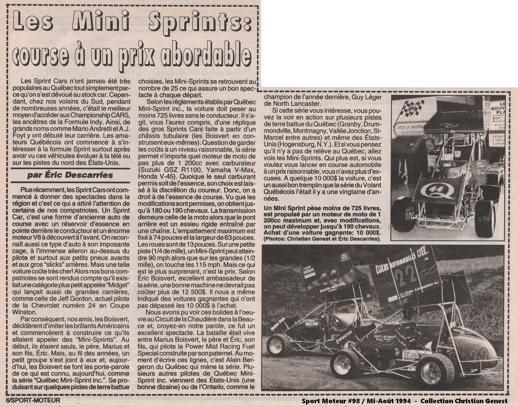 Article du Journal de l'Auto Sport Moteur Québec en mai 1992