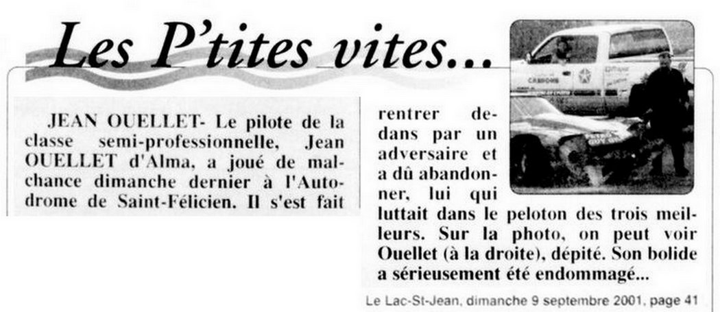 1ère : Voiture Semi-Pro à l'Autodrome Chicoutimi en 2001