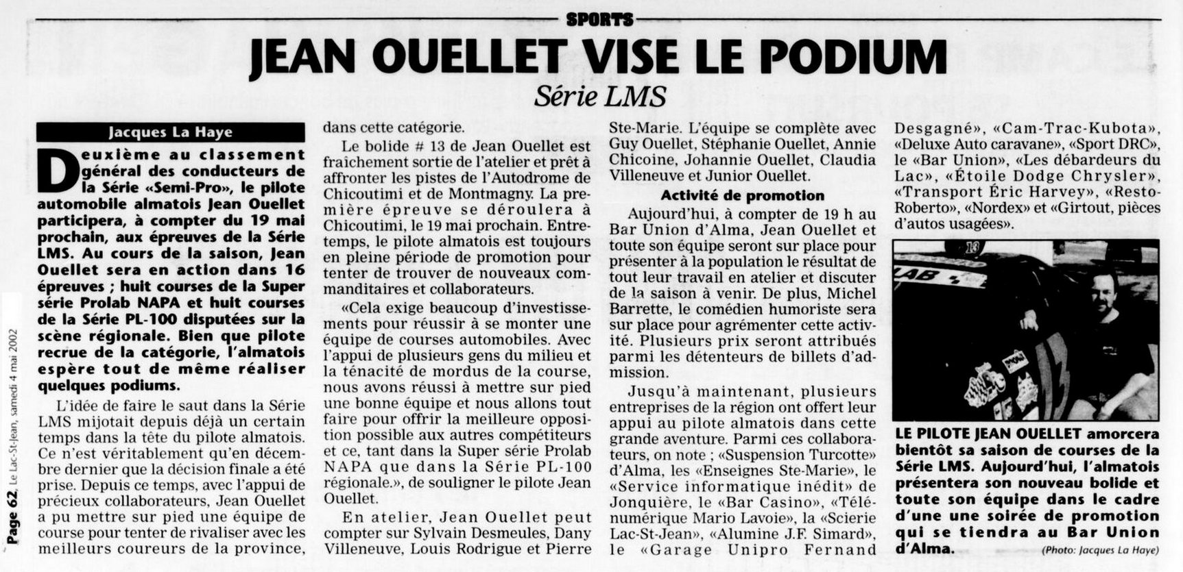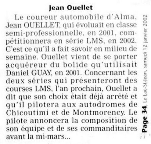 1ère et 2e : Voiture LMS à l'Autodrome Chicoutimi en 2002