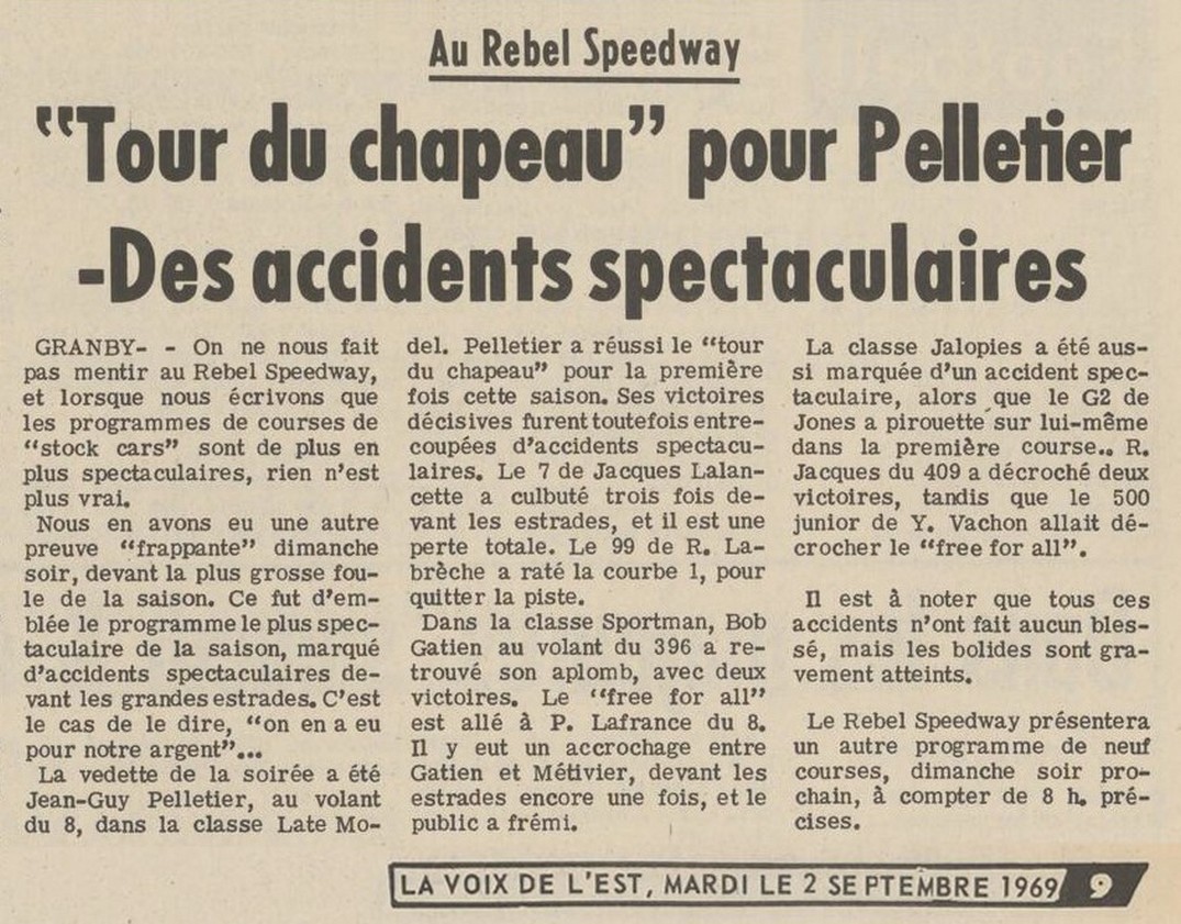 Provenant d'un programme du Granby Rebel Speedway en 1966