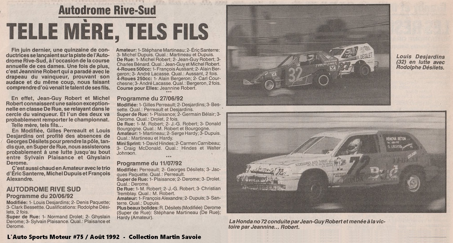 2e et 3e : Articles du Journal l'Auto Sports Moteur en 1992