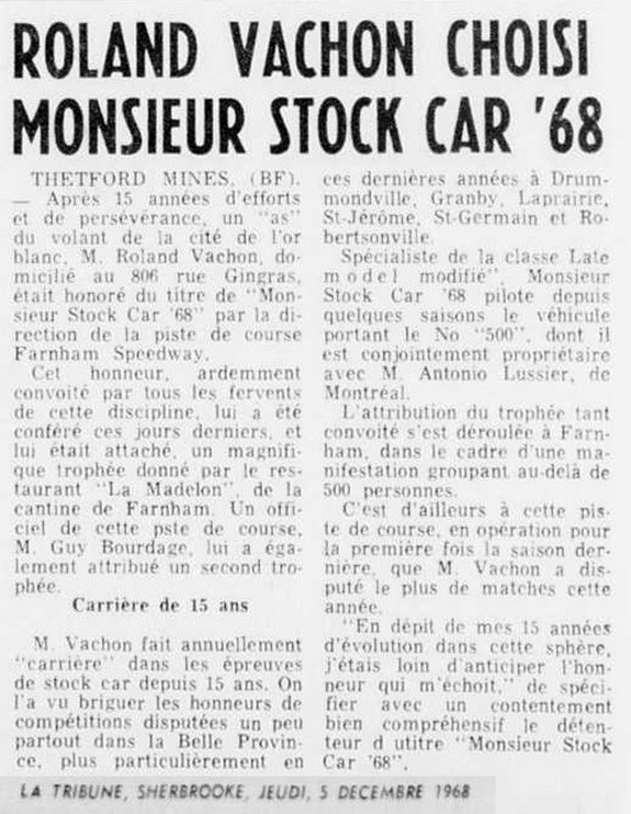 Monsieur Stock-Car 1968 au Farnham Speedway en 1968