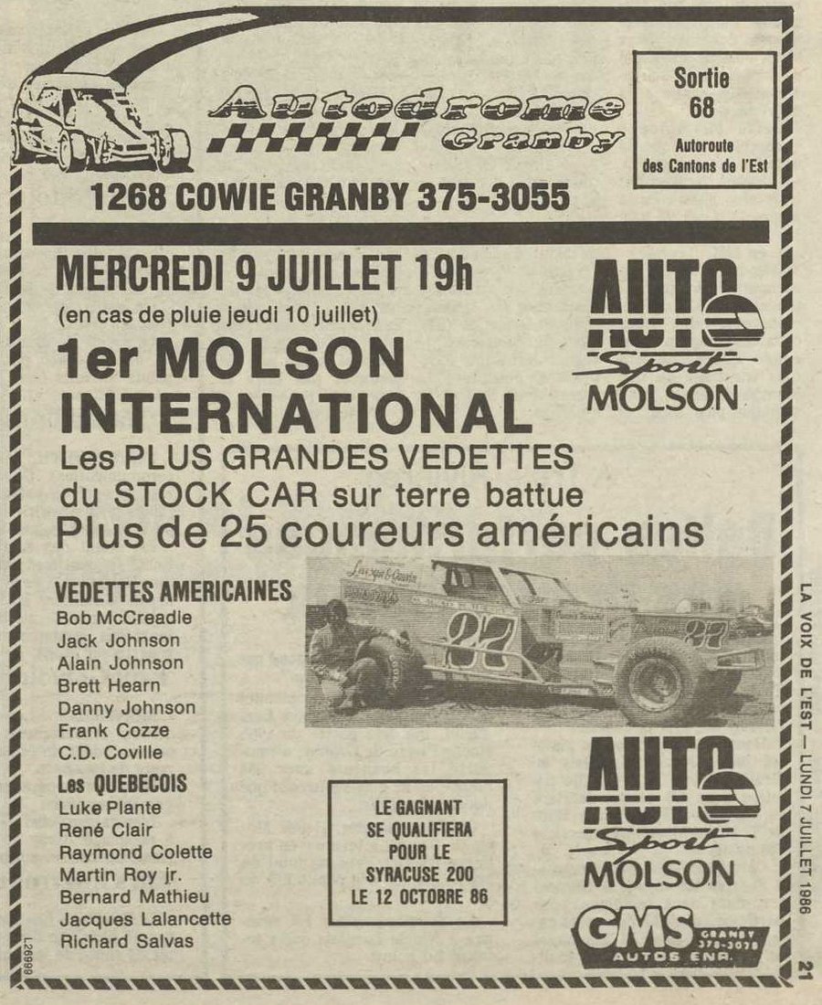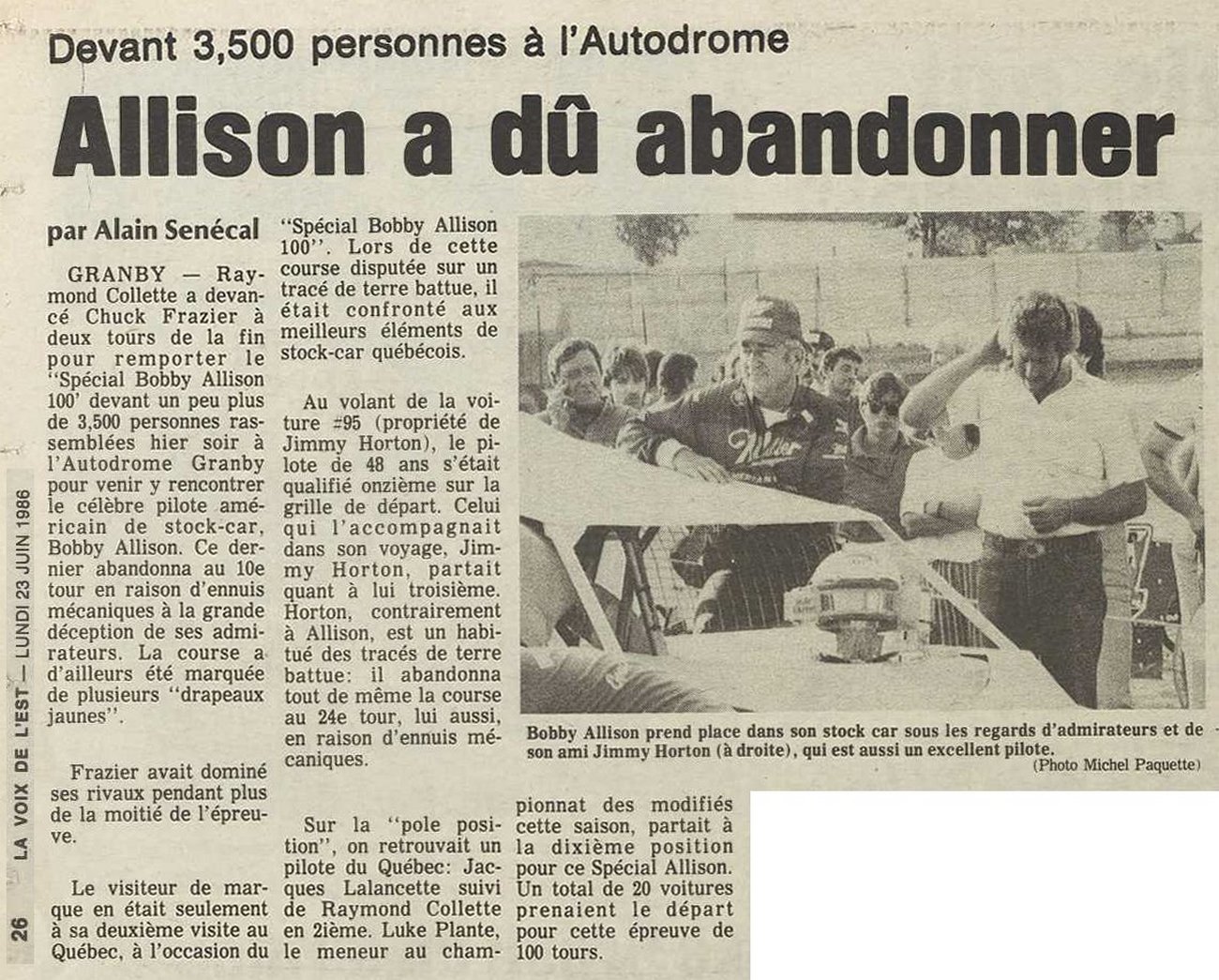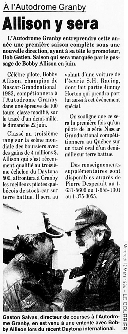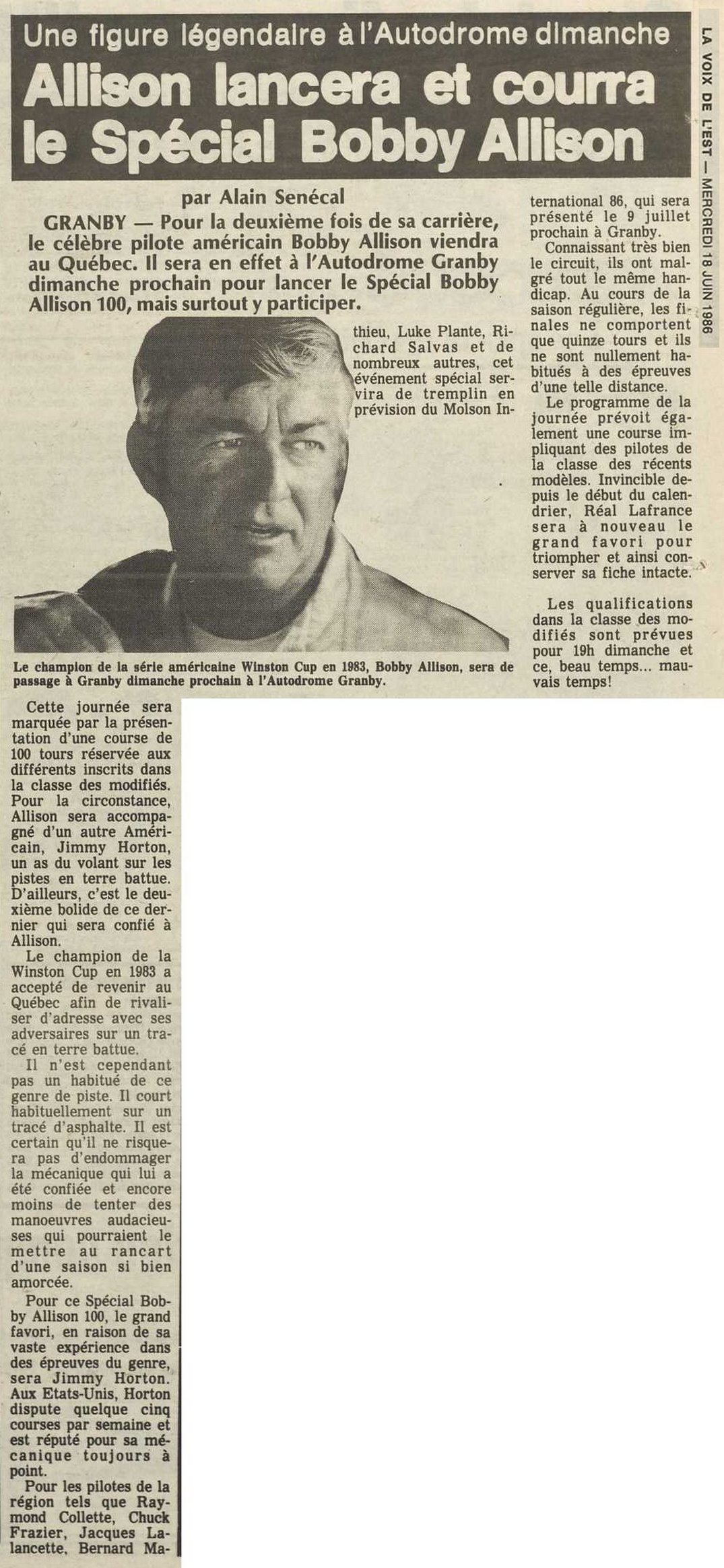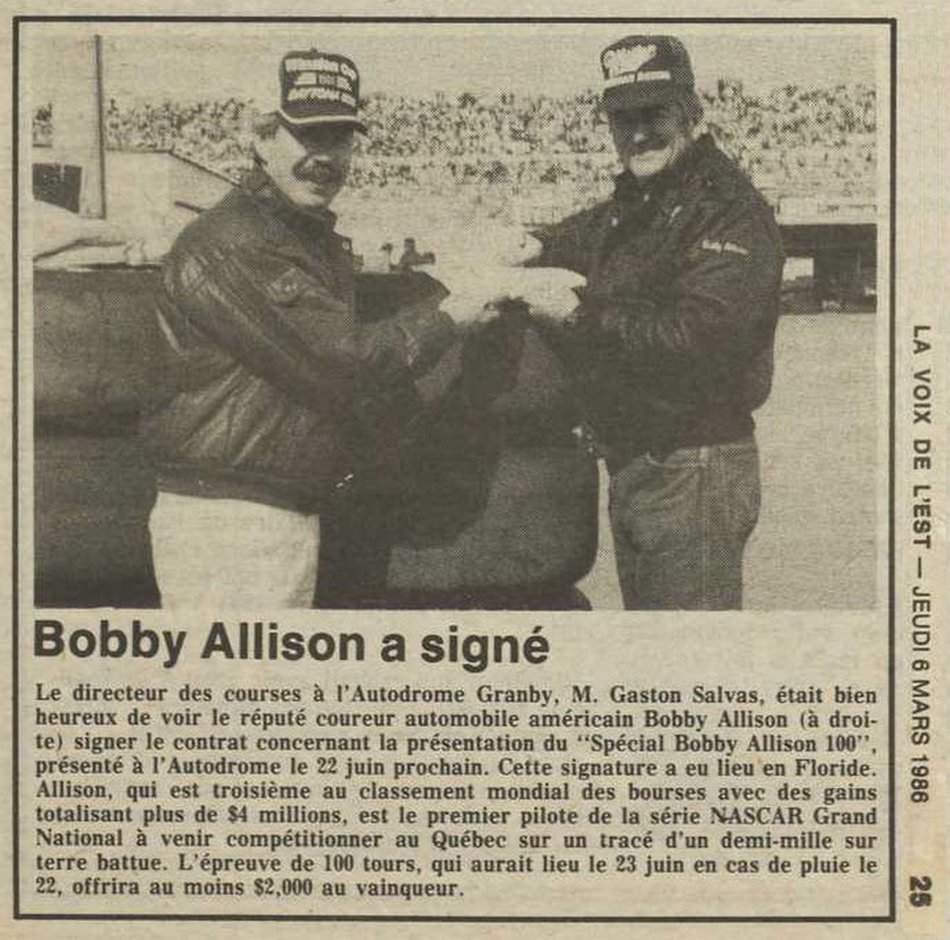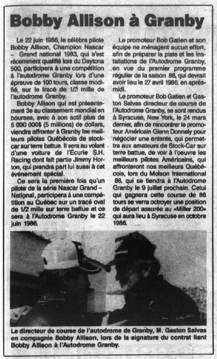 Programme souvenir pour la venue de Bobby Allison le 22 juin 1986