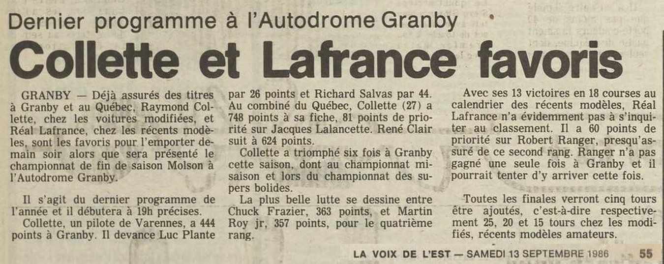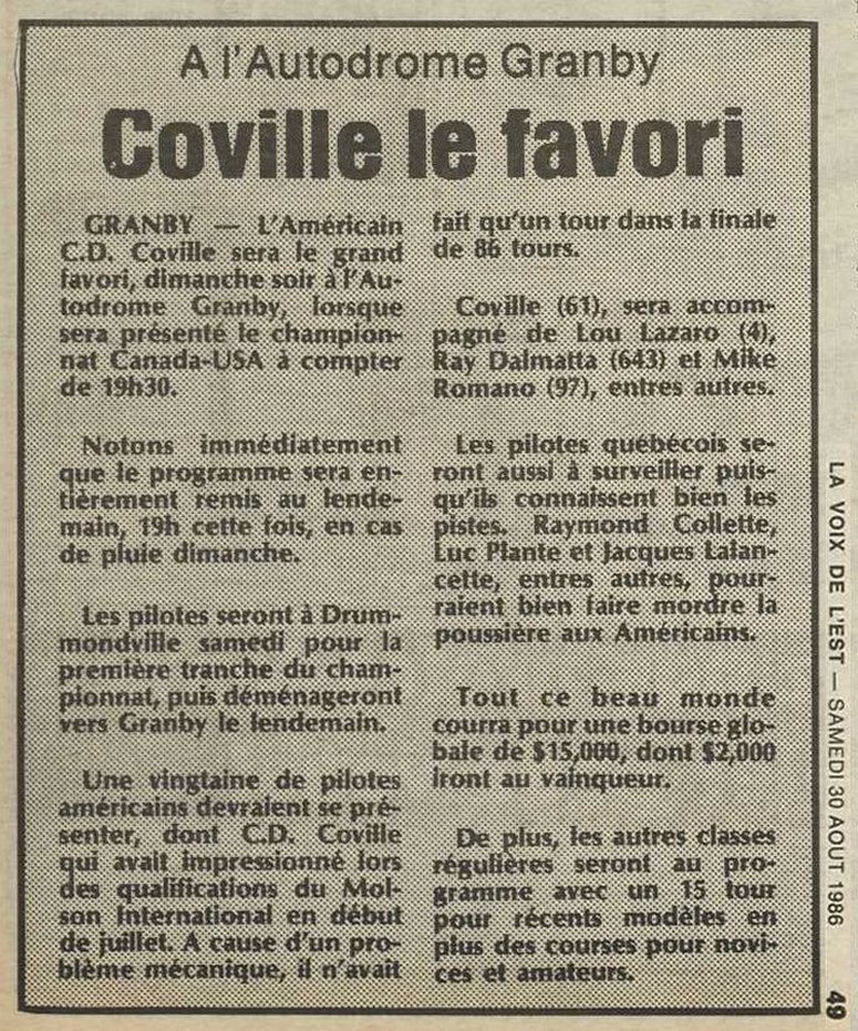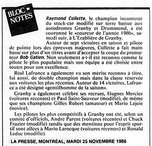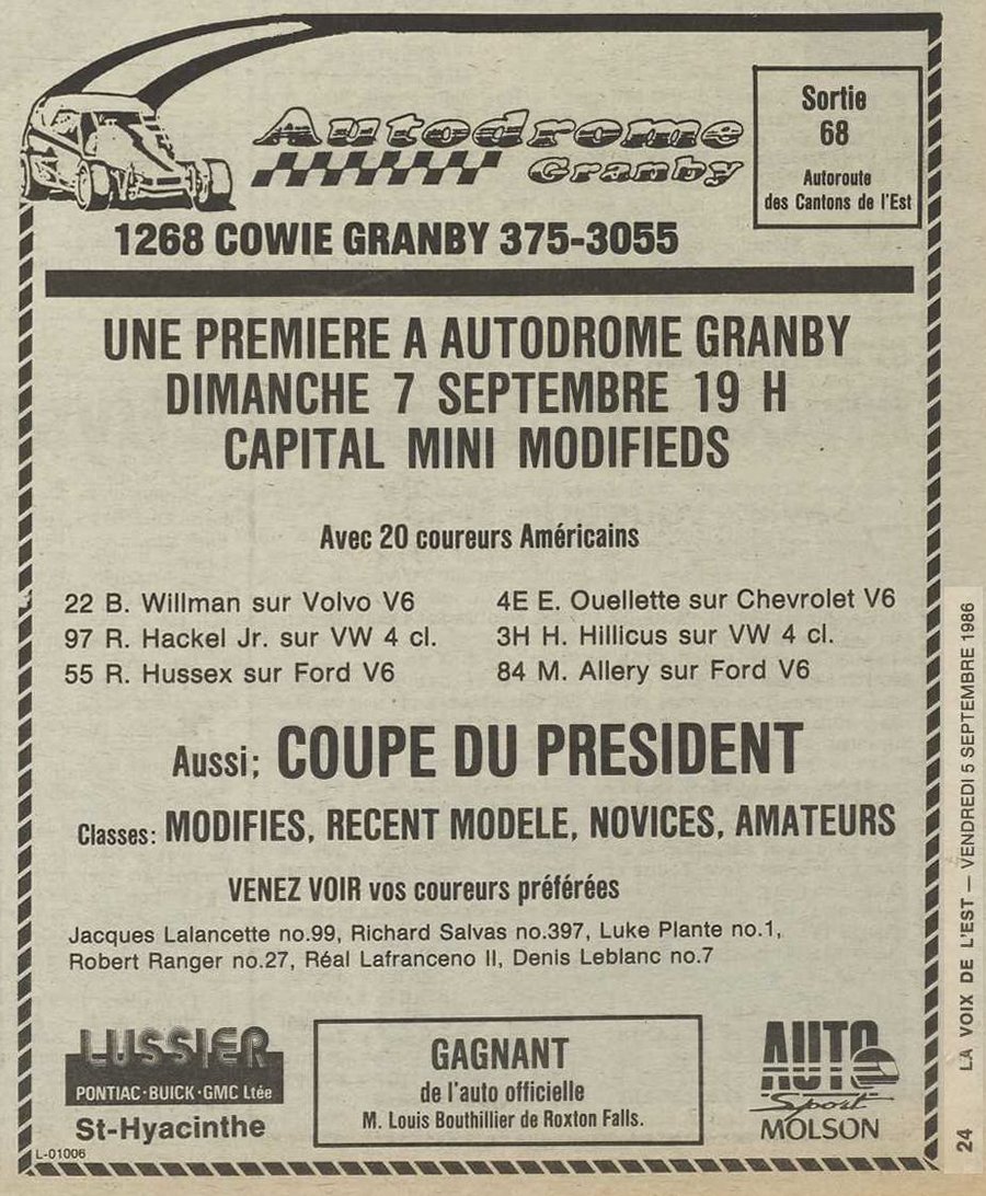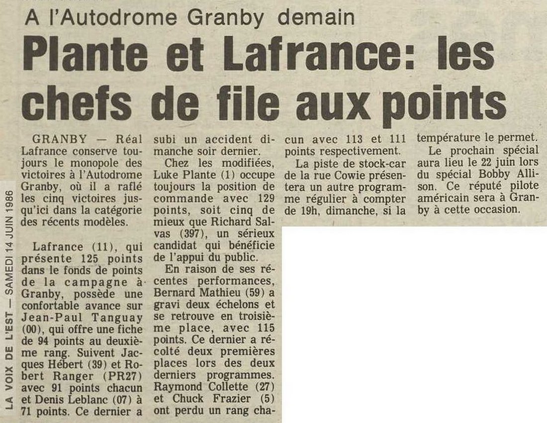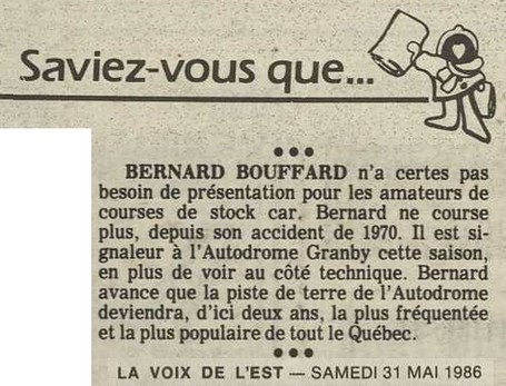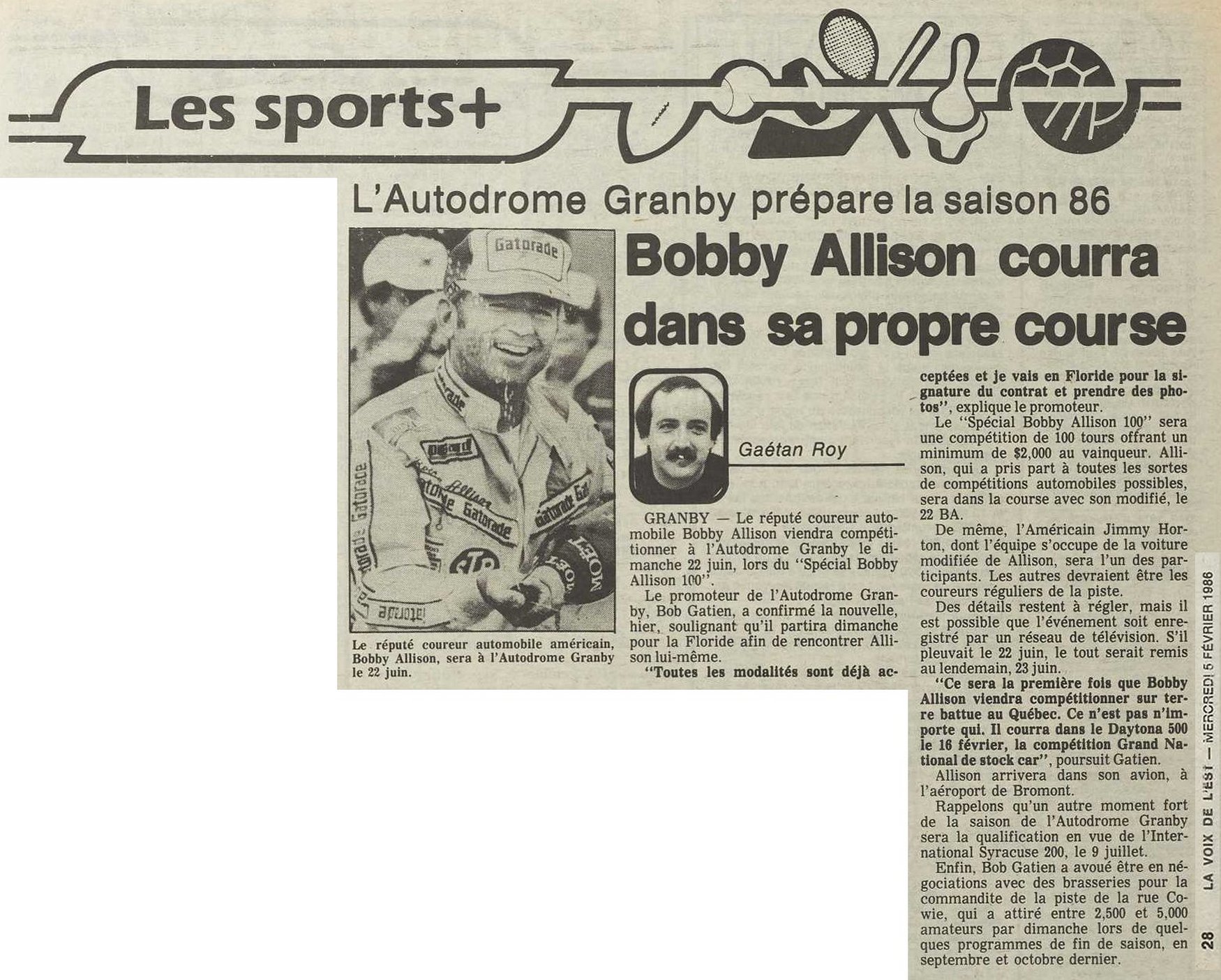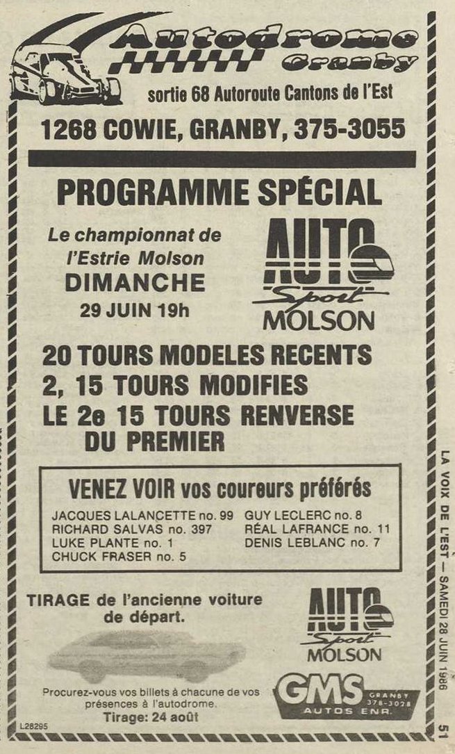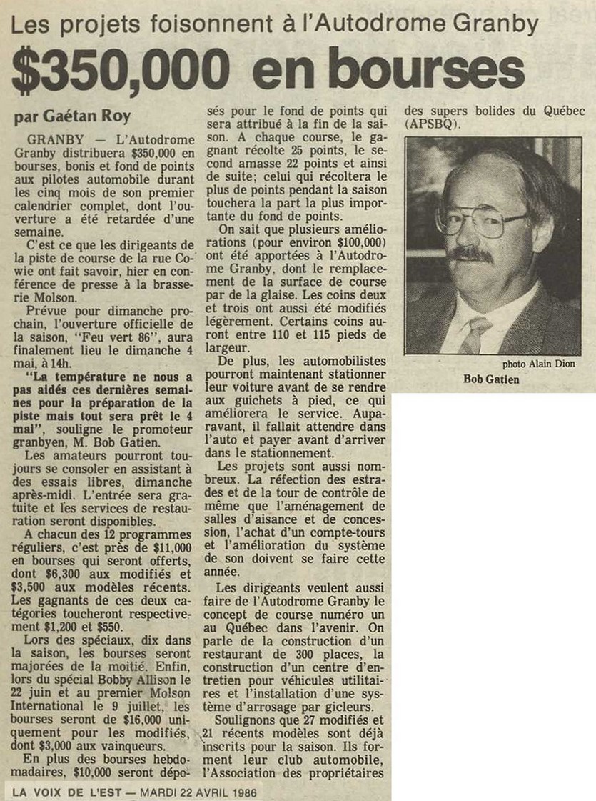 Programme souvenir pour la venue de Bobby Allison le 22 juin 1986