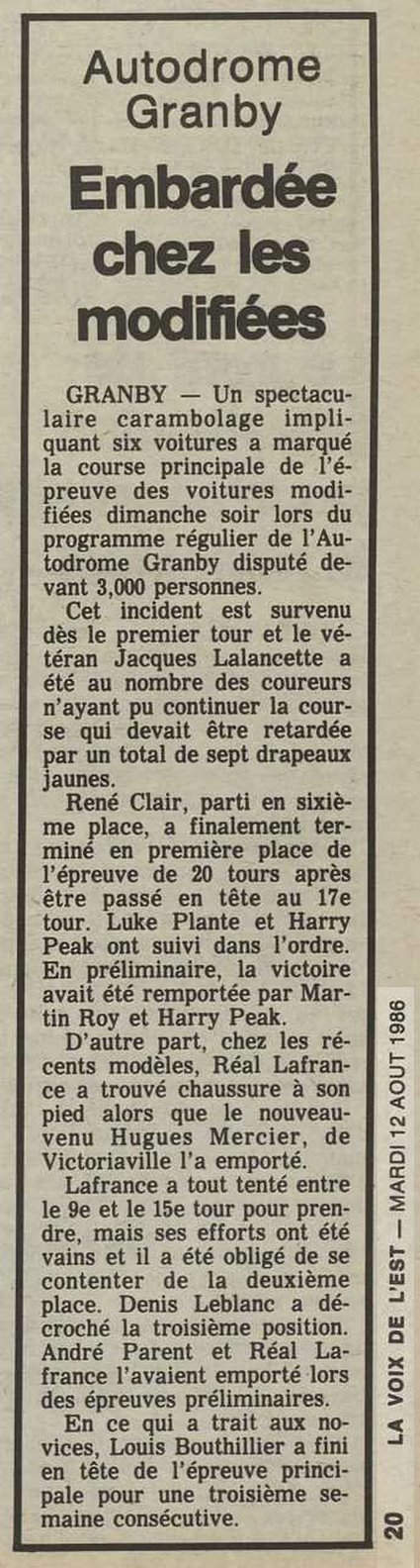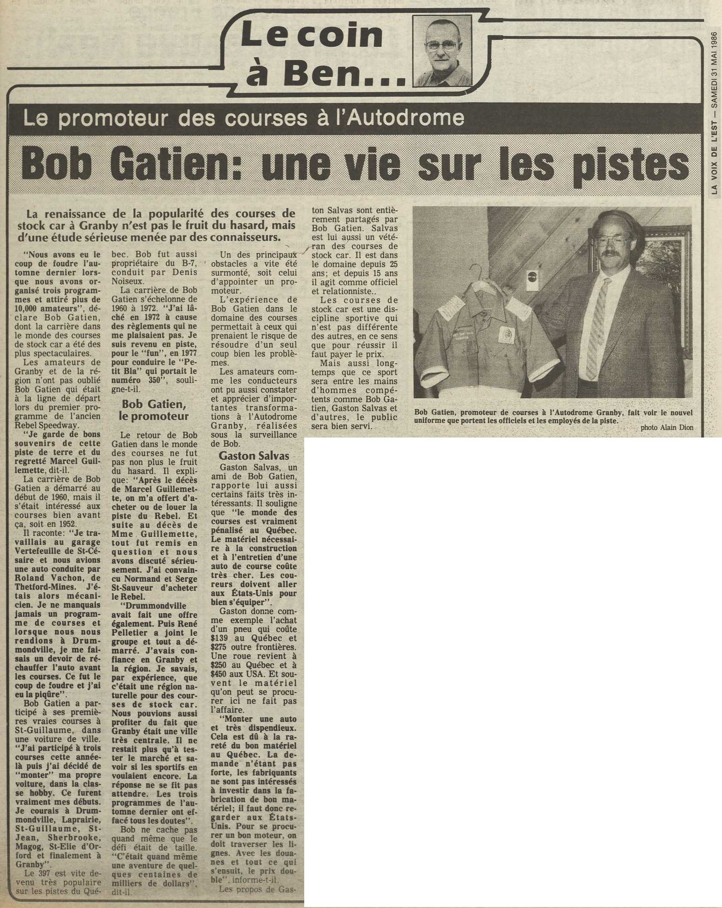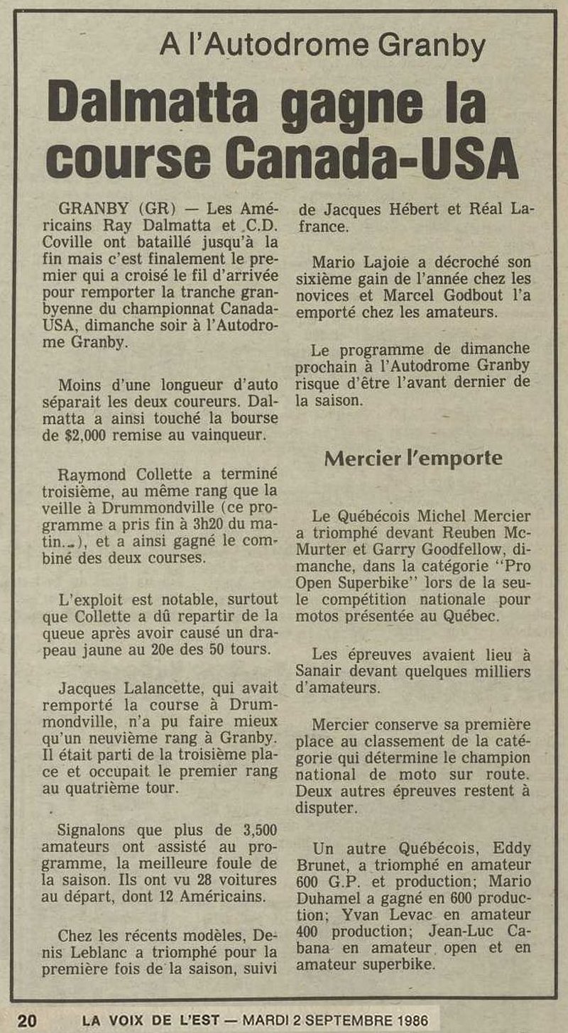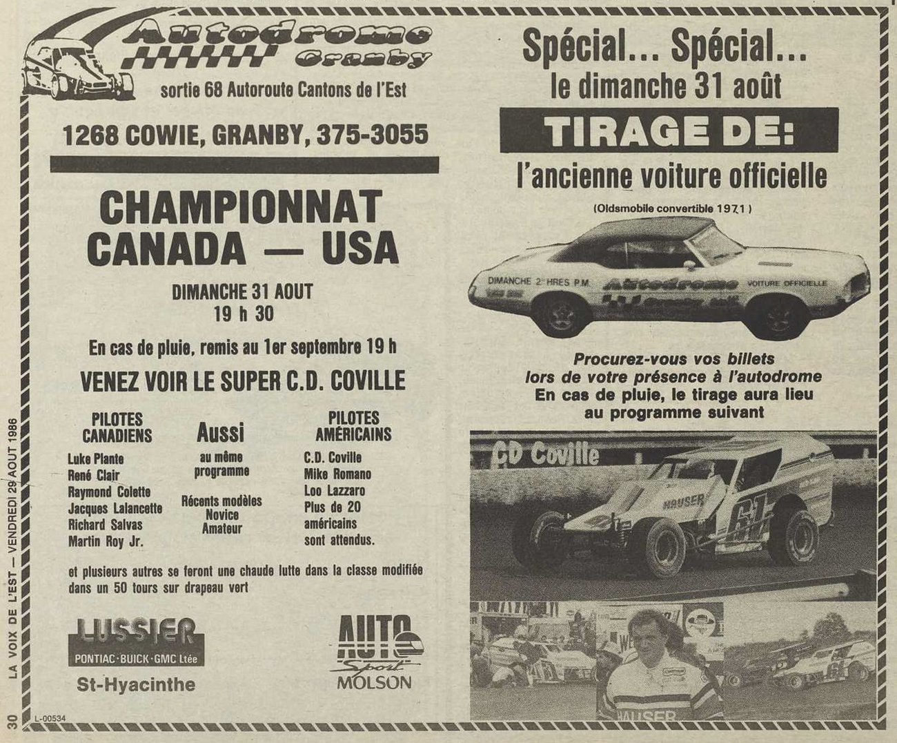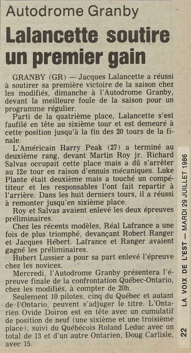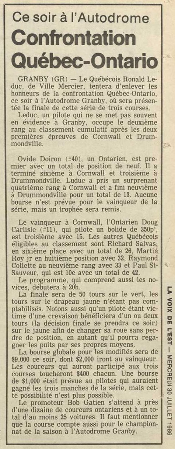 Programme souvenir pour la venue de Bobby Allison le 22 juin 1986