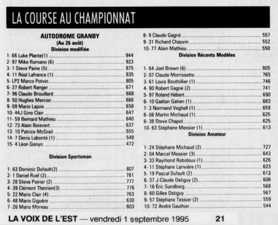 Sources : Christian 'Ti-Gaz' Genest et Ron Lafrance