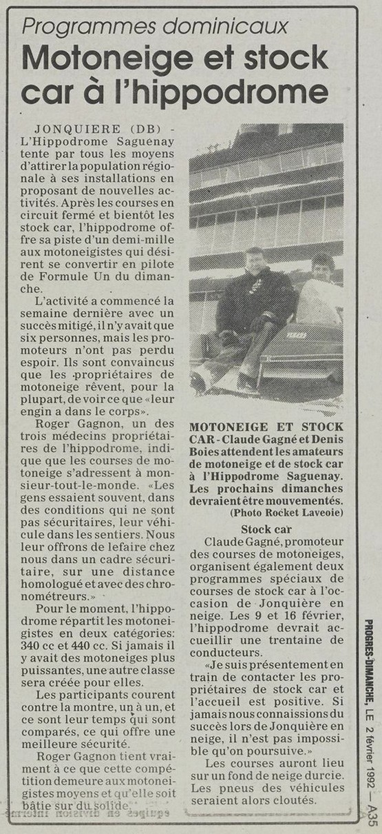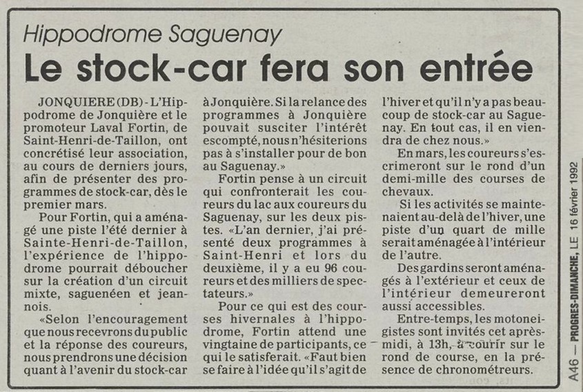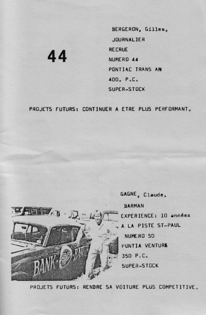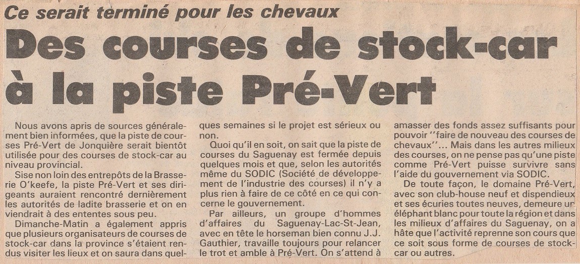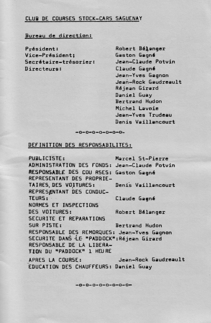 de l'époque 'Club de Courses Stock-Cars Saguenay' en 1985