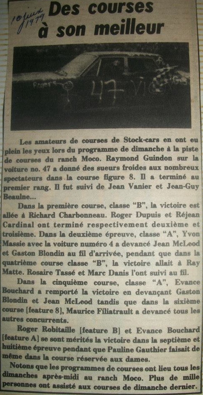 1ère : Voiture Semi-Pro de Ron Morin (ancien propriétaire du Cornwall Motor Speedway) en 1981