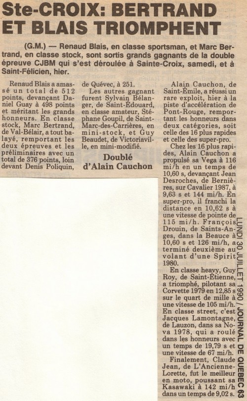 1ère : Voitures de la classe Amateur en 1990
